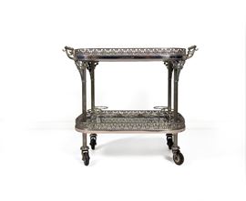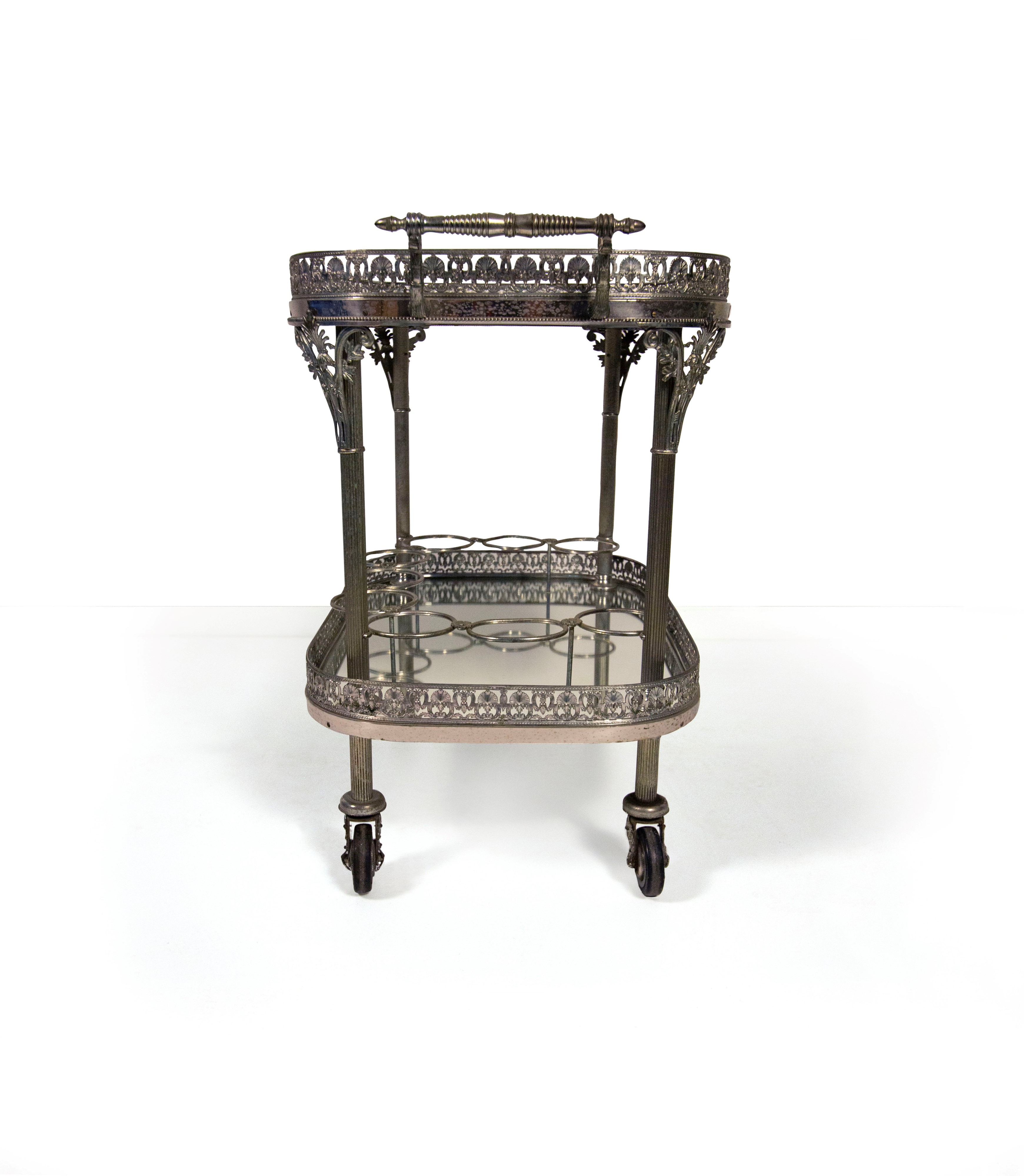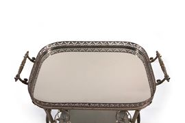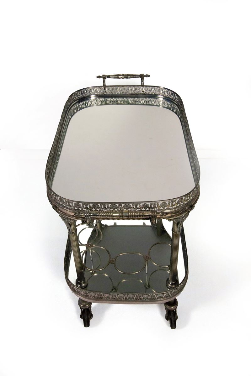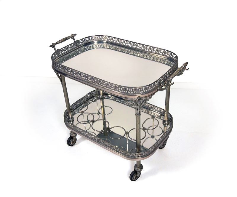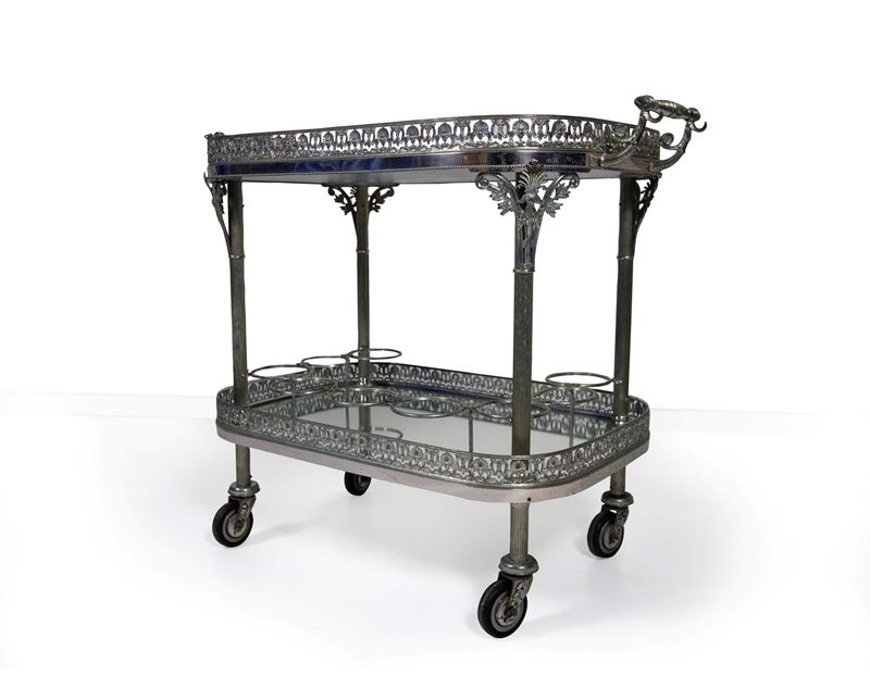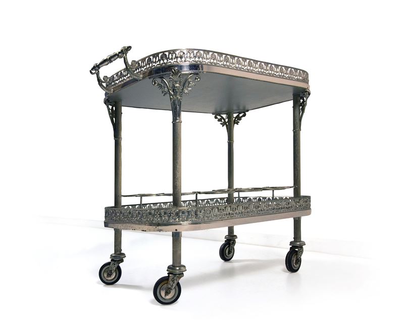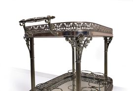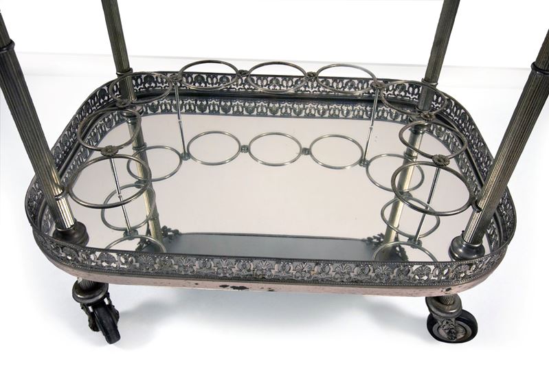ghiera con decori a palmette, montanti a colonna; al piano inferiore nove anelli portabottiglie