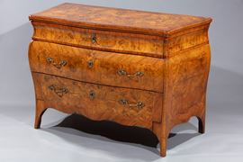 Cassettone lastronato in noce e radica di noce, Lombardia, metà del XVIII secolo