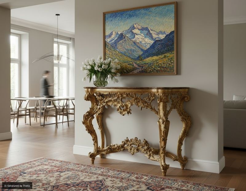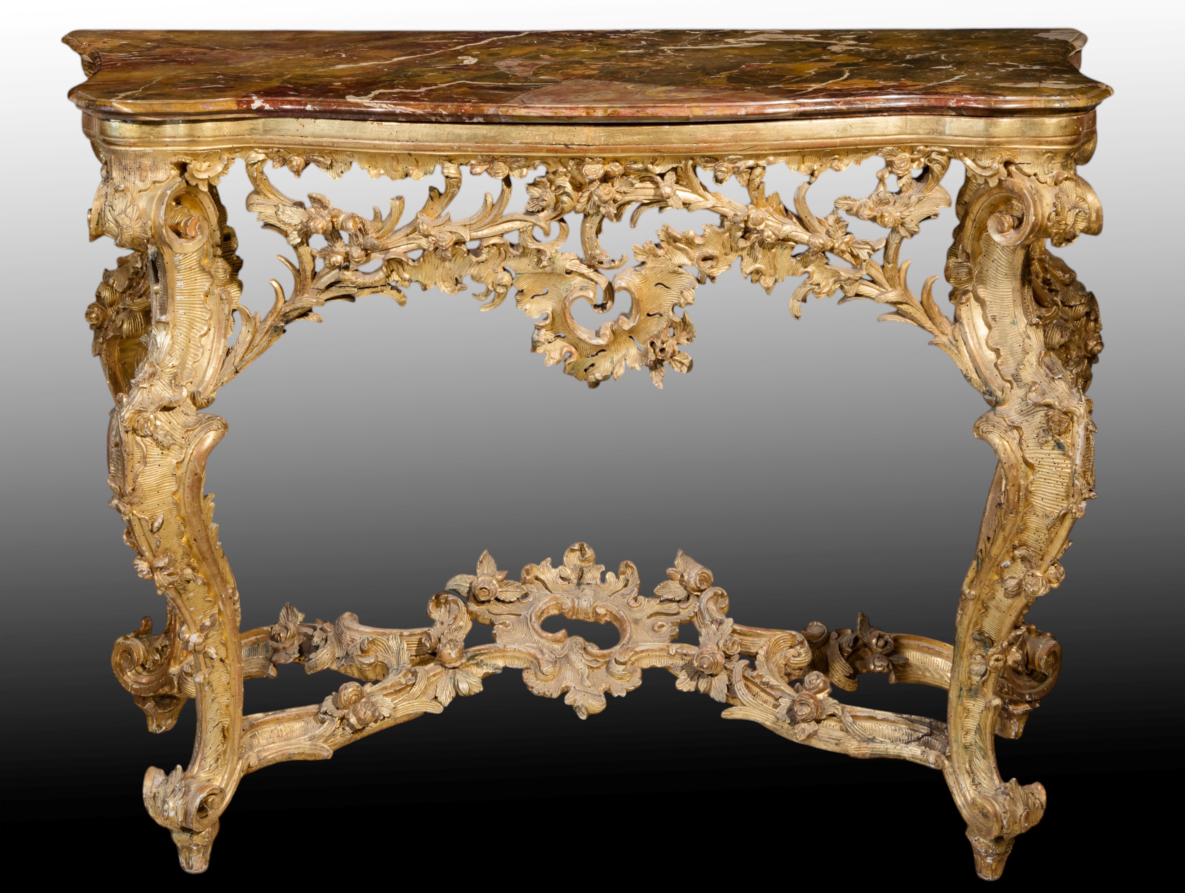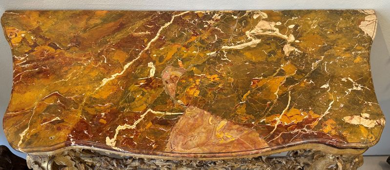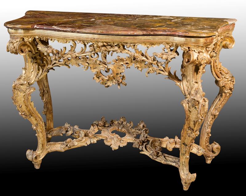 Console in legno scolpito intagliato e dorato, Genova, metà XVIII secolo