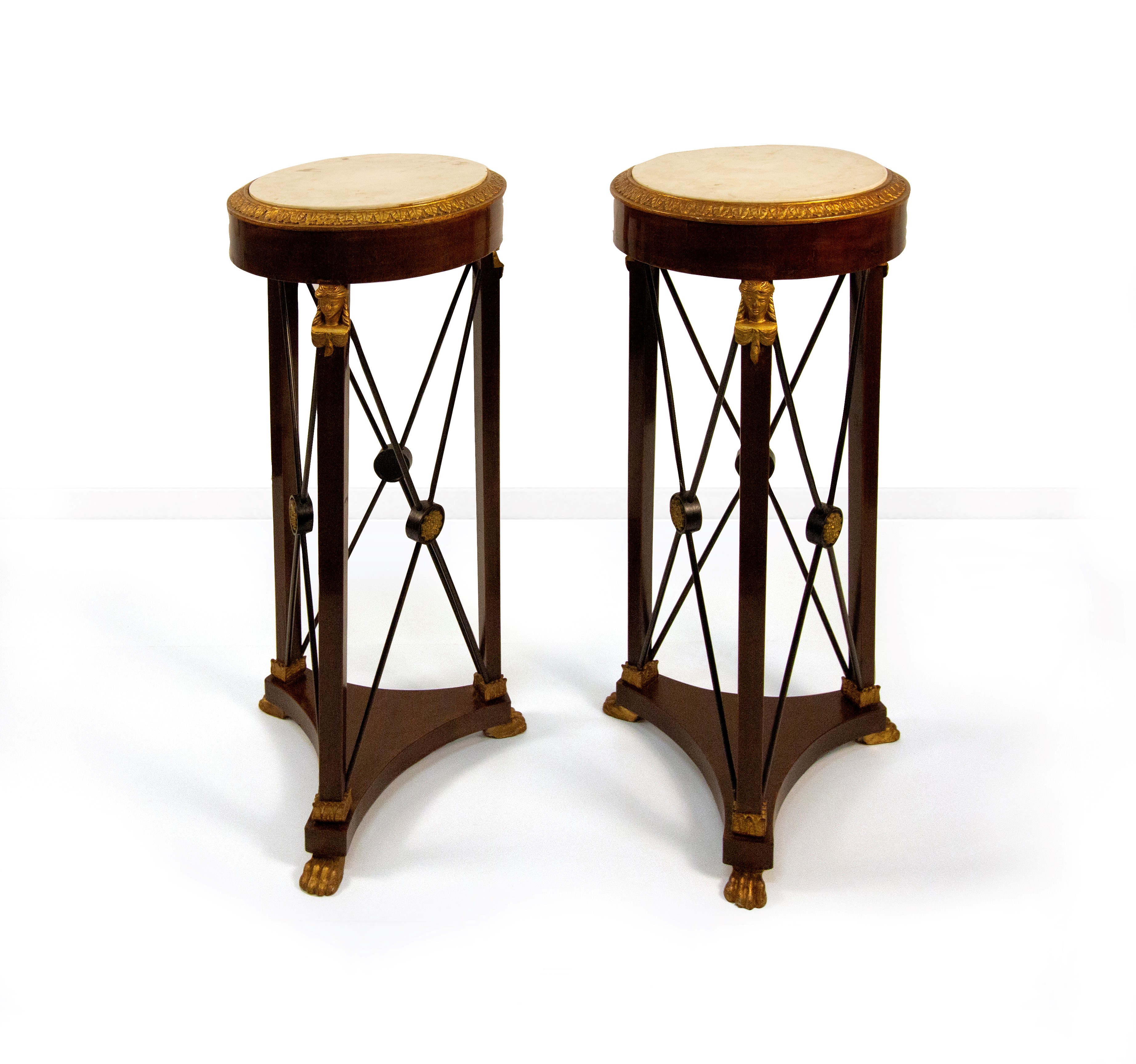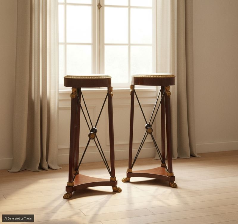 Coppia di gueridon in mogano, di gusto Impero, inizio XX secolo
