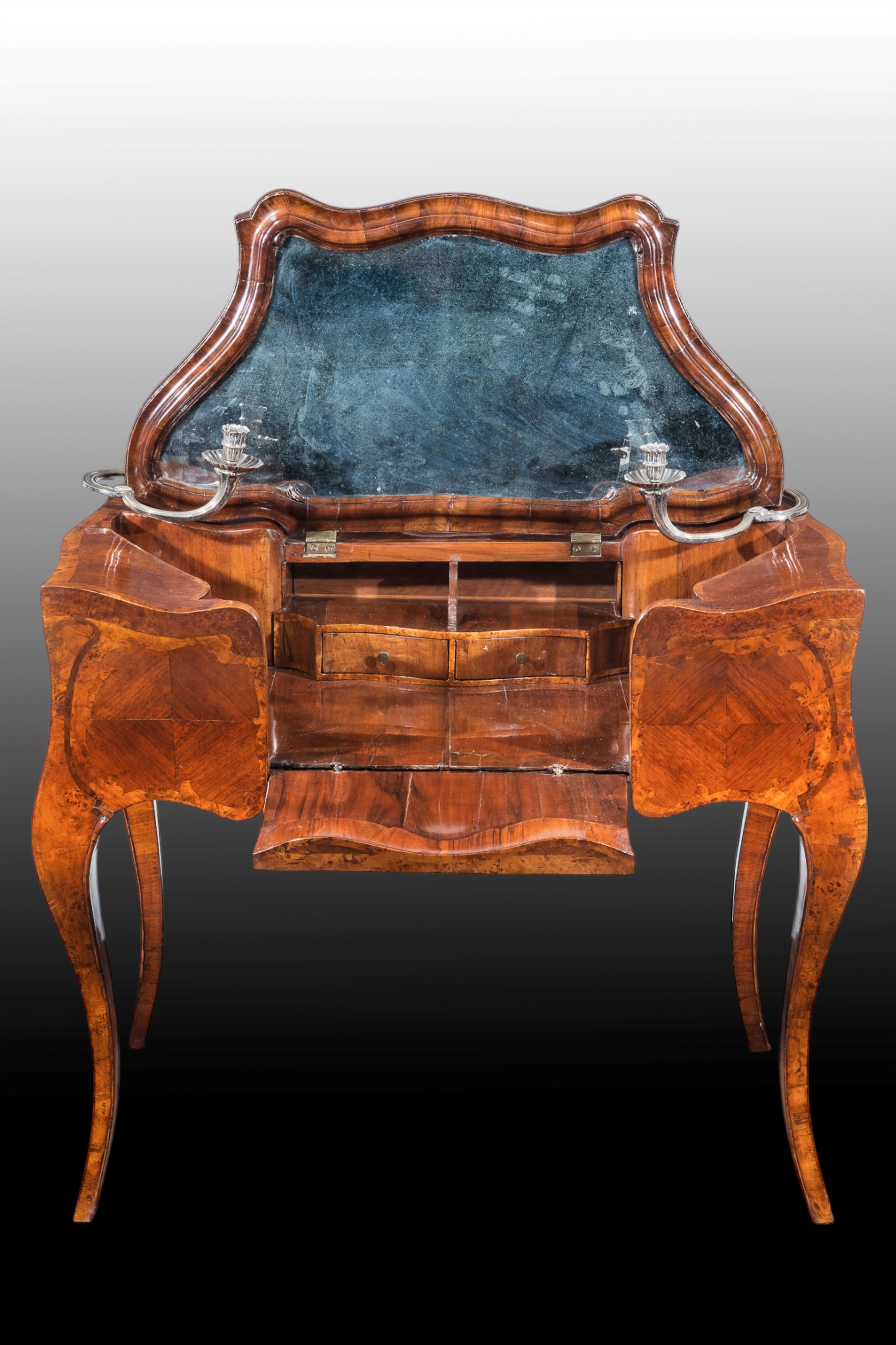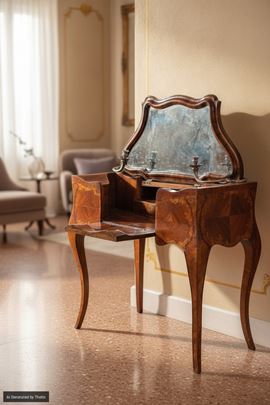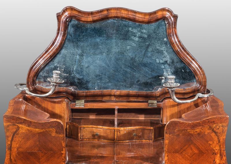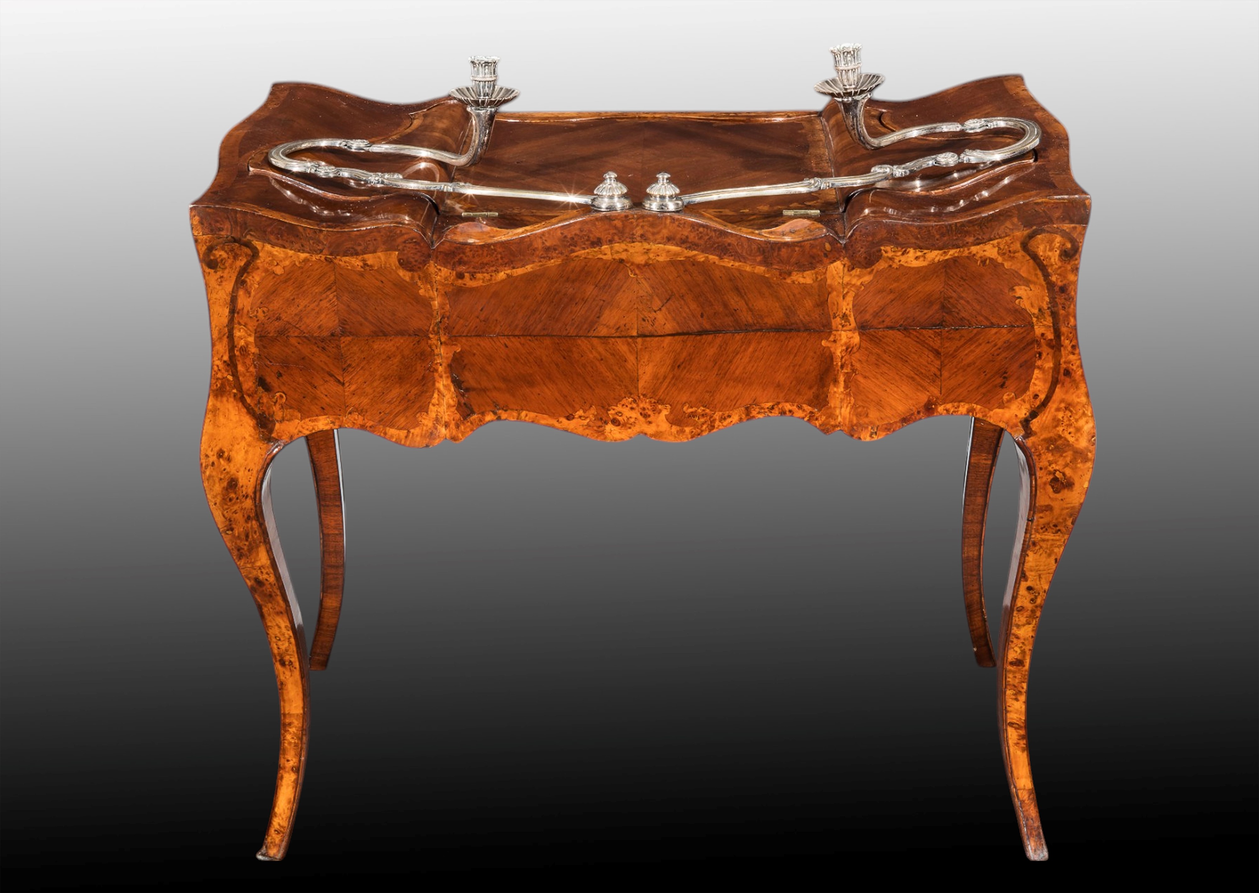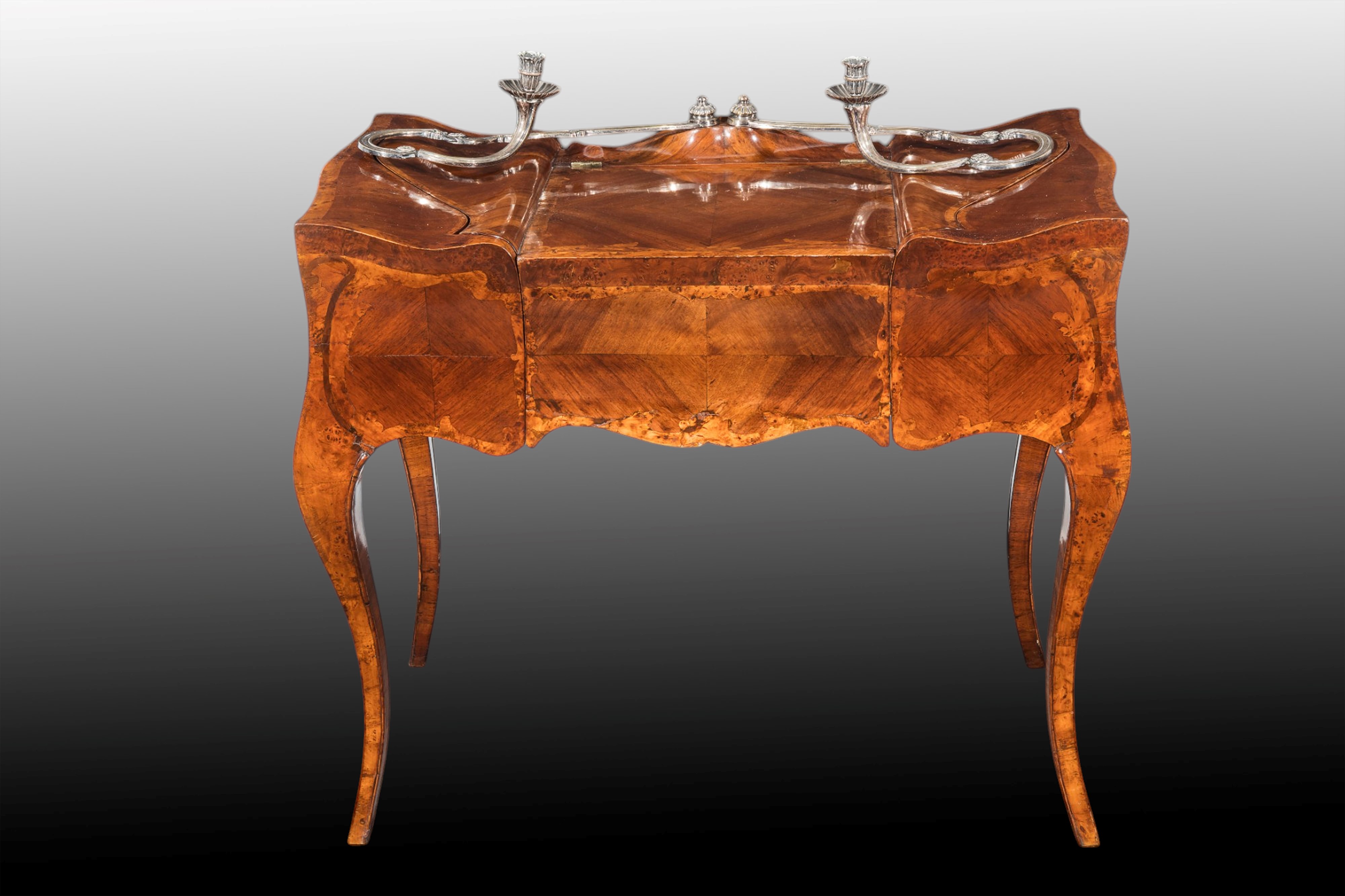 lastronata in noce e radica di tuja, portacandele in metallo argentato, cm 75x90x54