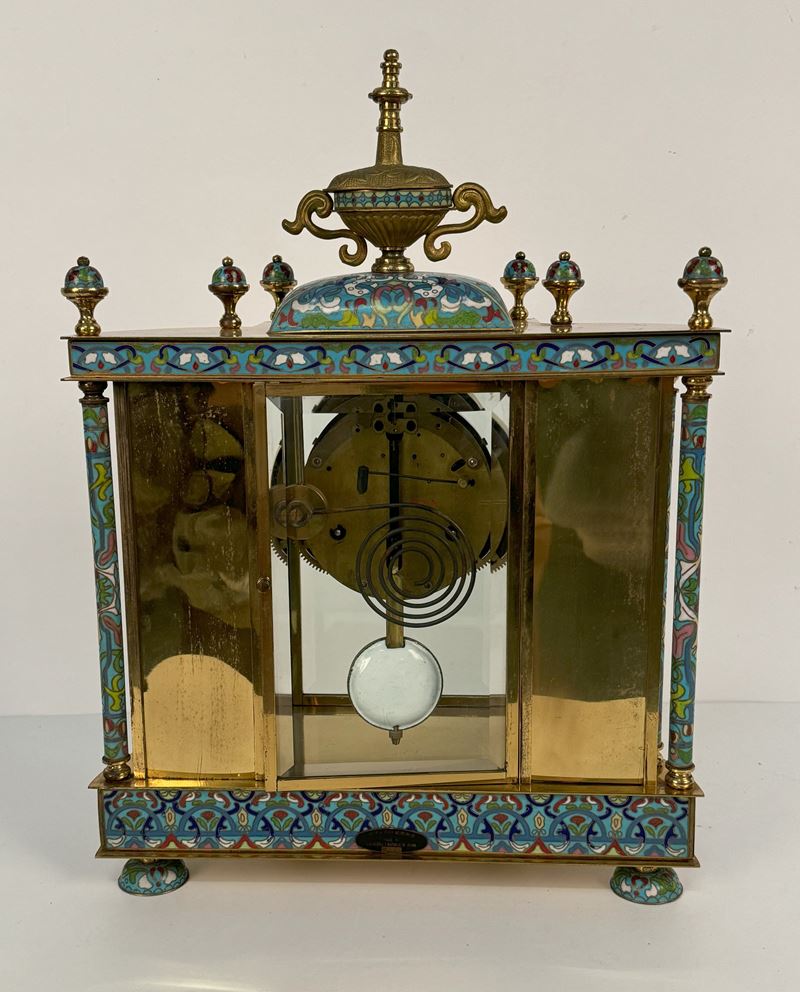 quadrante in porcellana con fascia delle ore in numeri romani smaltati e doppio foro di carica, con chiave.