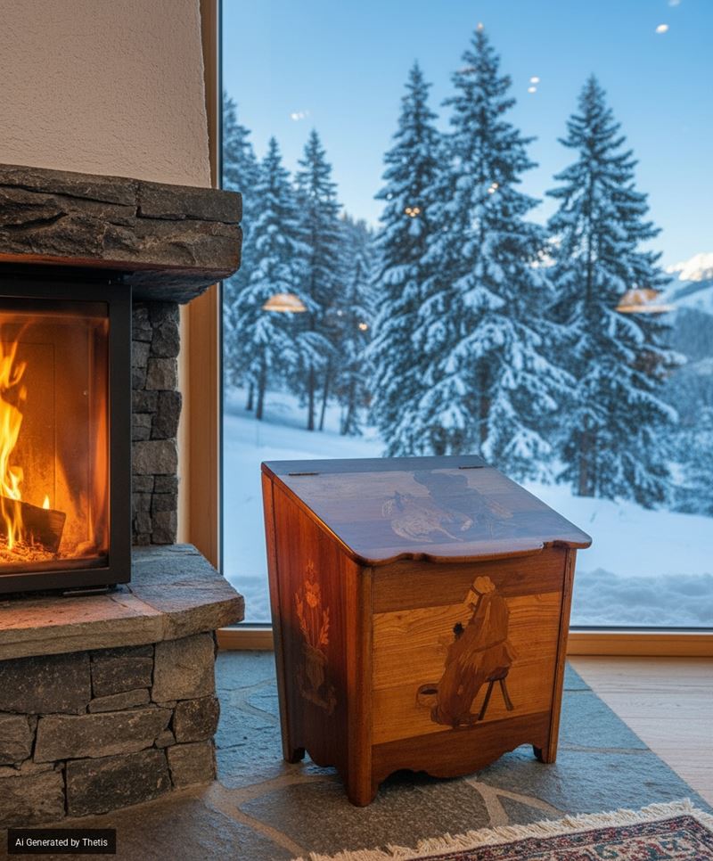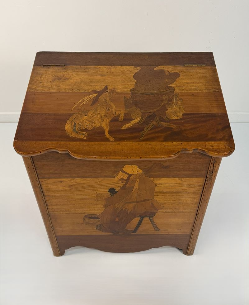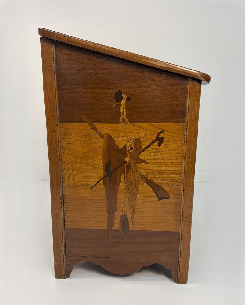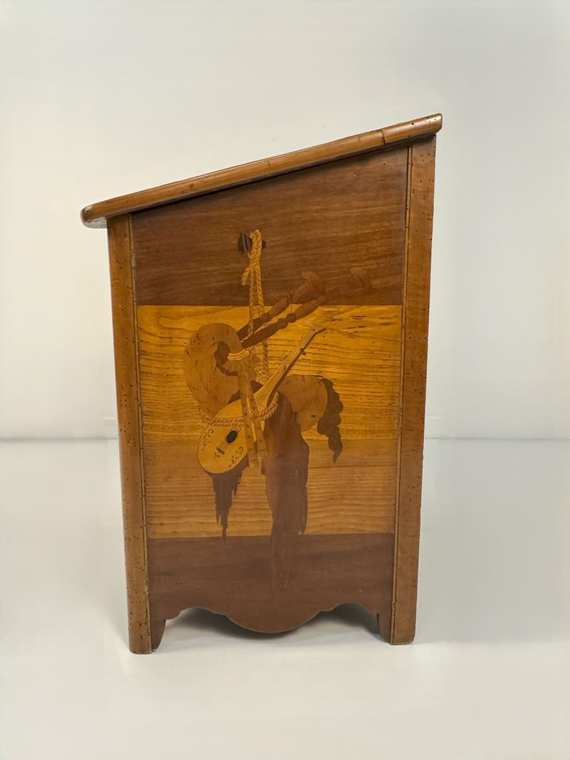 Portalegna intarsiato in legni diversi, XIX / XX secolo