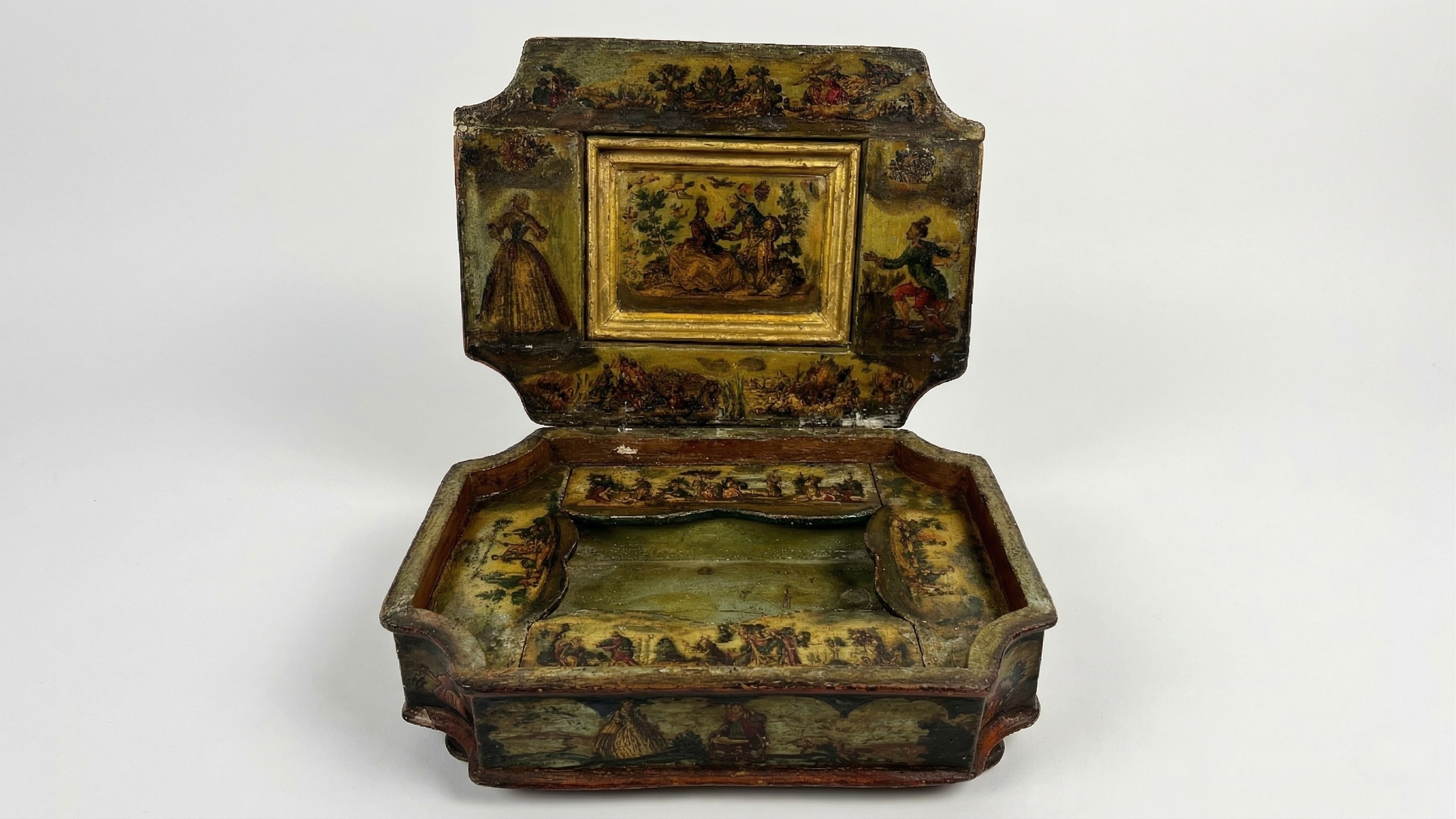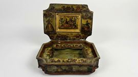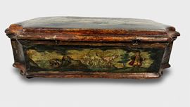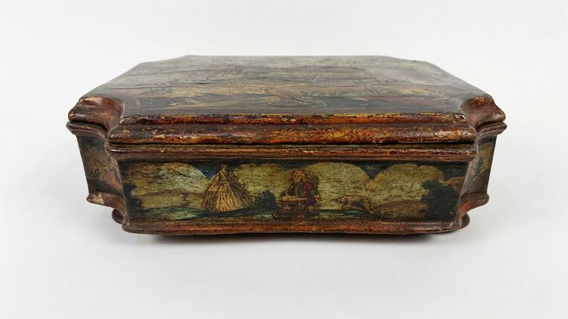 Scatola in legno laccato in policromia e arte povera, Venezia, XVIII secolo