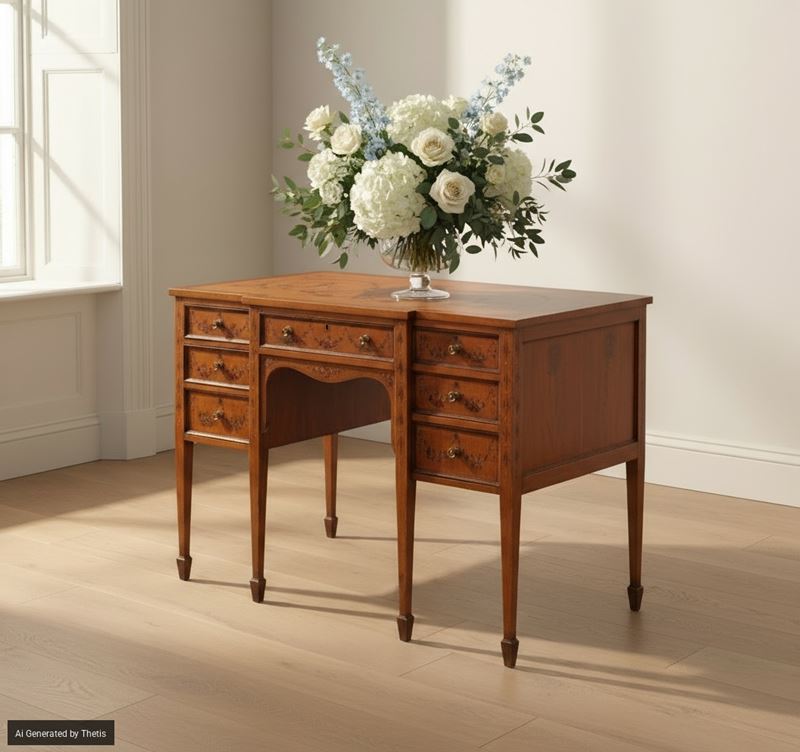 Scrivania in satinwood dipinto in policromia, Inghilterra, XIX secolo