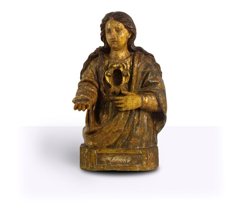 Scultura reliquiario in legno scolpito laccato e dorato, XVII secolo