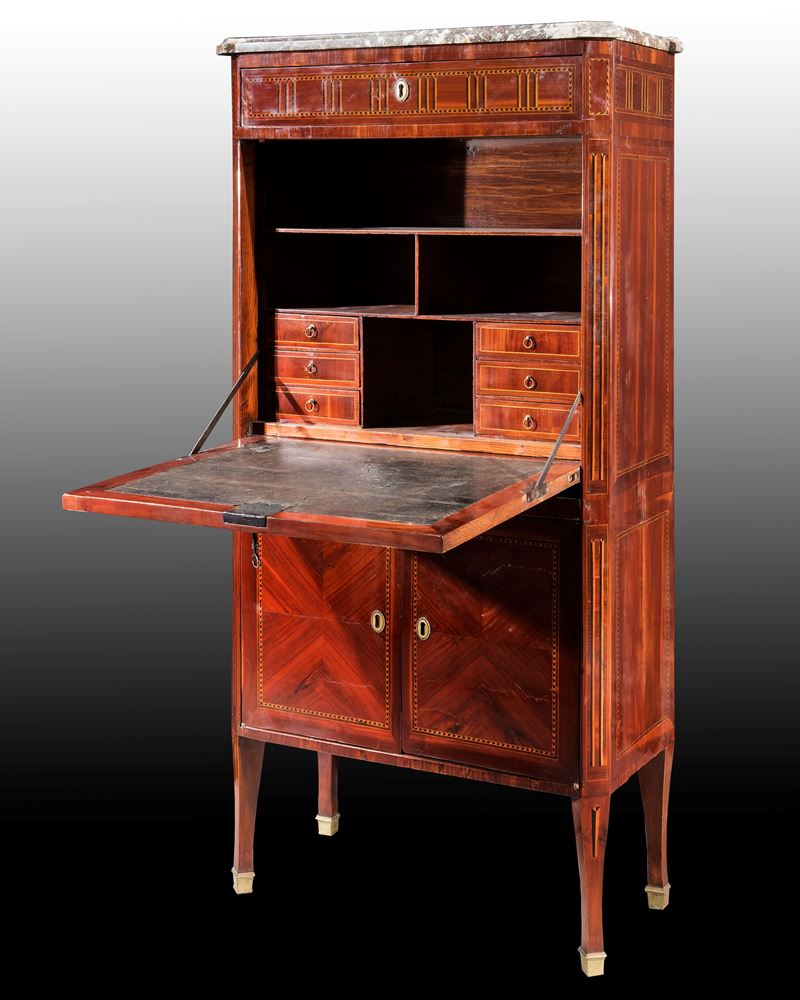 Secrétaire lastronato in palissandro e intarsiato in legni diversi, Francia, fine del XVIII secolo