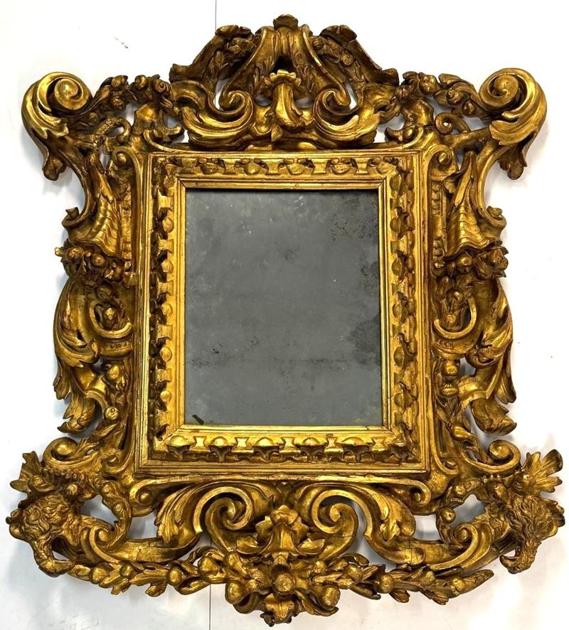 Specchiera in legno scolpito, intagliato e dorato, Toscana, inizi del XVIII secolo