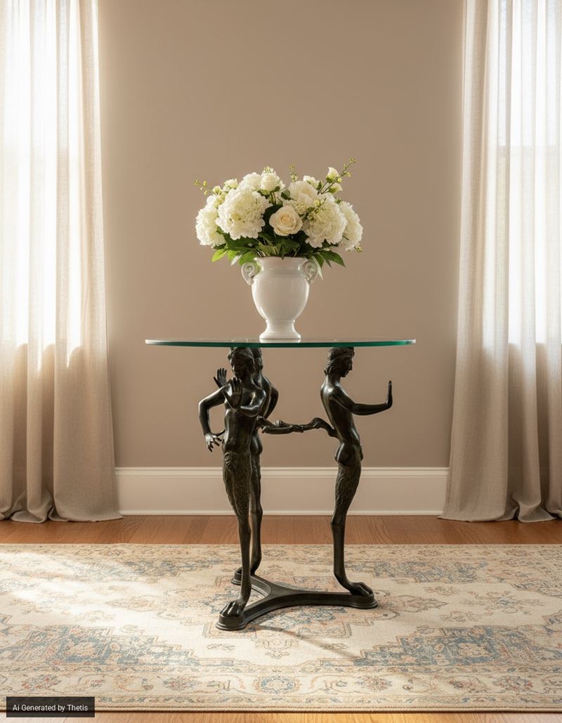 ispirato al noto braciere pompeiano, piano circolare in vetro