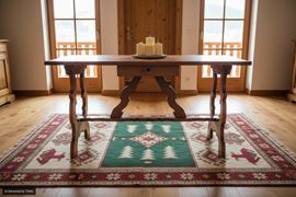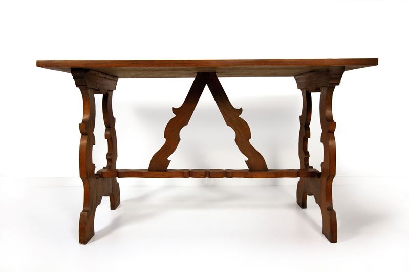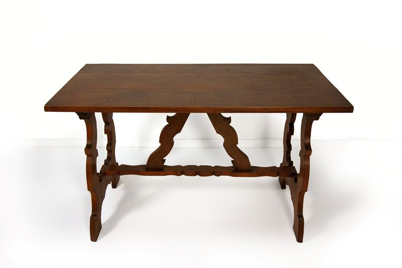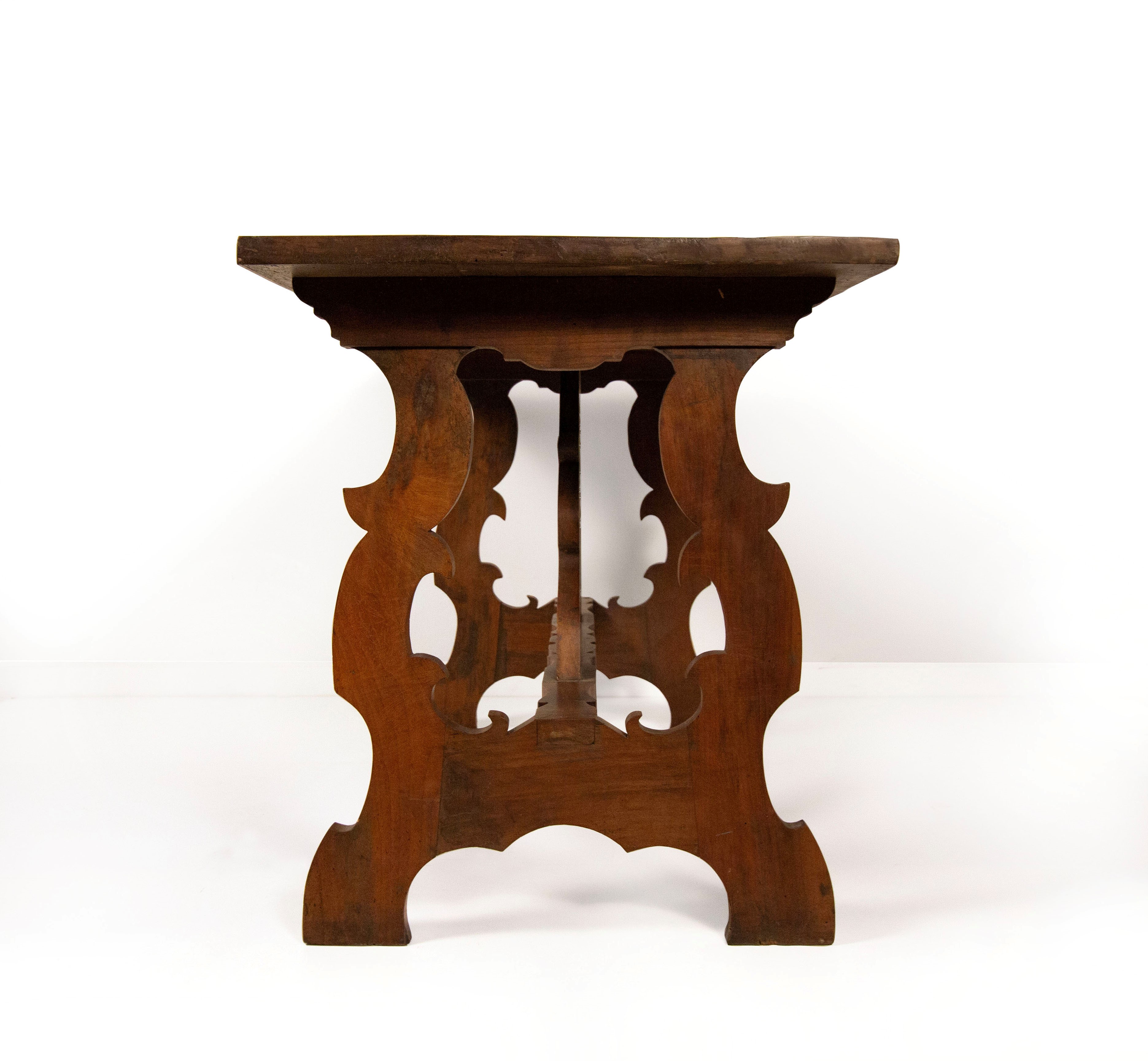 in stile seicentesco, piano rettangolare, montanti sagomati a lira e raccordati da tre traverse similari