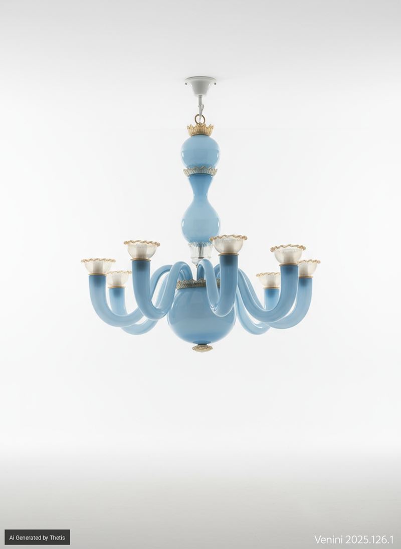 vetro azzurro e vetro a foglia d'oro, produzione Venini