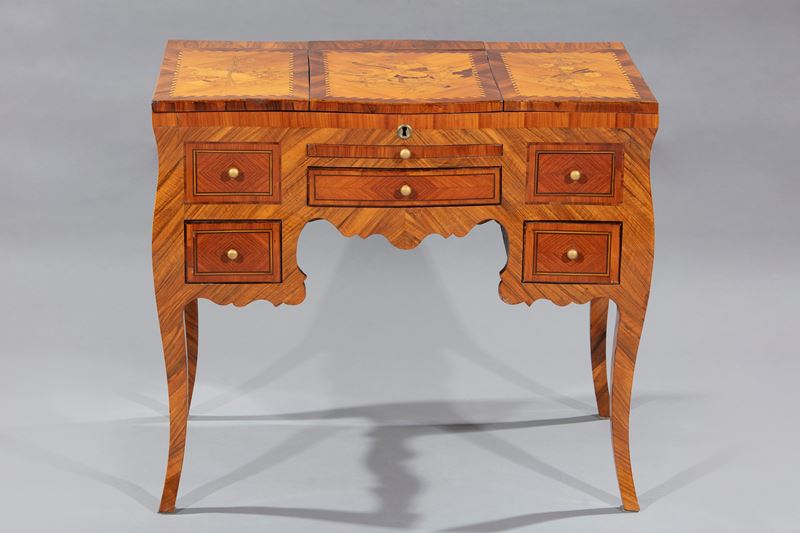Dressing table veneered and inlaid in bois de rose and different woods, 18th century