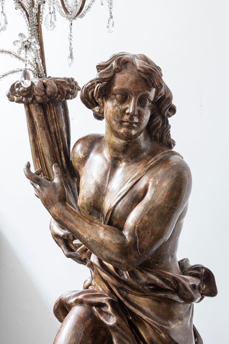 modeled as genuflected virile figures with cornucopias